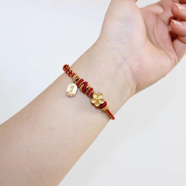 This bracelet features a meticulously tied double knot, a classic symbol of unbreakable bonds and enduring luck in traditional craftsmanship. The bright red string, chosen for its cultural significance in attracting positivity, is paired with an adjustable design for a perfect fit on any wrist. The double knot’s interwoven structure represents harmony and connection, making it a heartfelt token for loved ones—each loop carrying the intention of good fortune, loyalty, and shared joy.