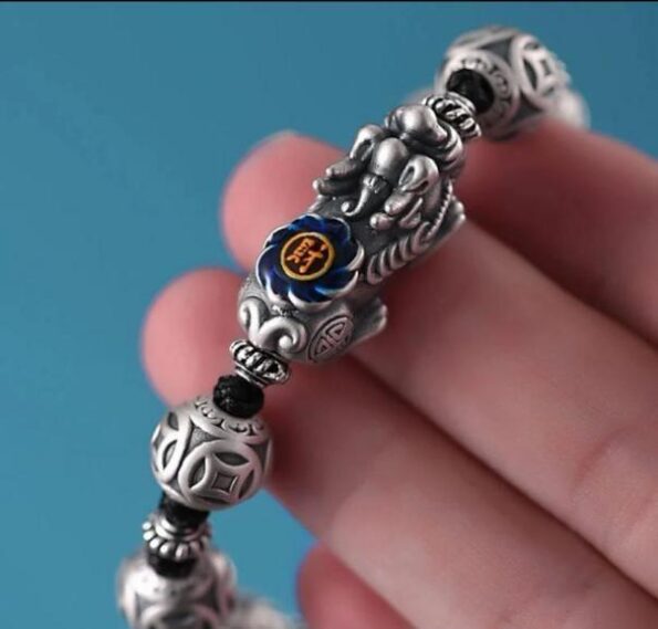 This bracelet is the cipher of the ambitious.Let the enamel-hungry Pixiu guard your field. Let the ‘Wealth’ glyph ignite your dormant channels of fortune.The onyx sigils dissolve resistance. The silver links draw the current of the universe to your palm.For those who speak the silent language of Feng Shui,it is both armor against scarcity and a magnet for legacy